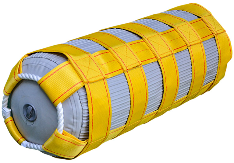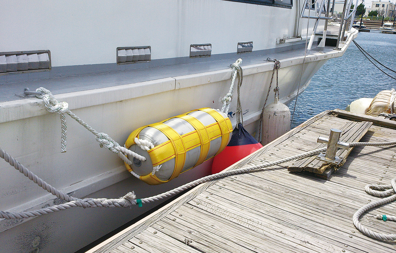 さらに本体表皮の周りには、引っ張りや摩擦に強いスリングベルトで表面を保護し、波や風雨の過酷な環境下でも、フェンダーの耐久性と船舶への防舷性を発揮します。【実願:2017-005374】